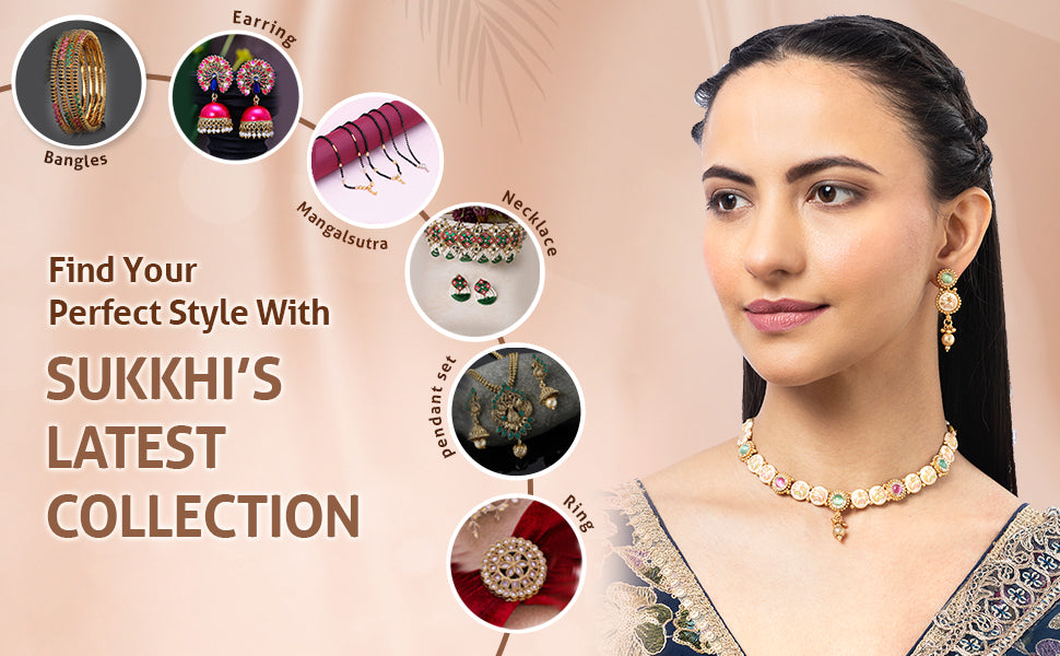 * Stylish Design: Sukkhi Gold Plated Choker Necklace Set features elegant Meenakari work and sparkling AD stones, adding a traditional charm to your look. Gold Plating: The gold plating enhances the necklace's appeal, making it a perfect accessory for festive and special occasions.