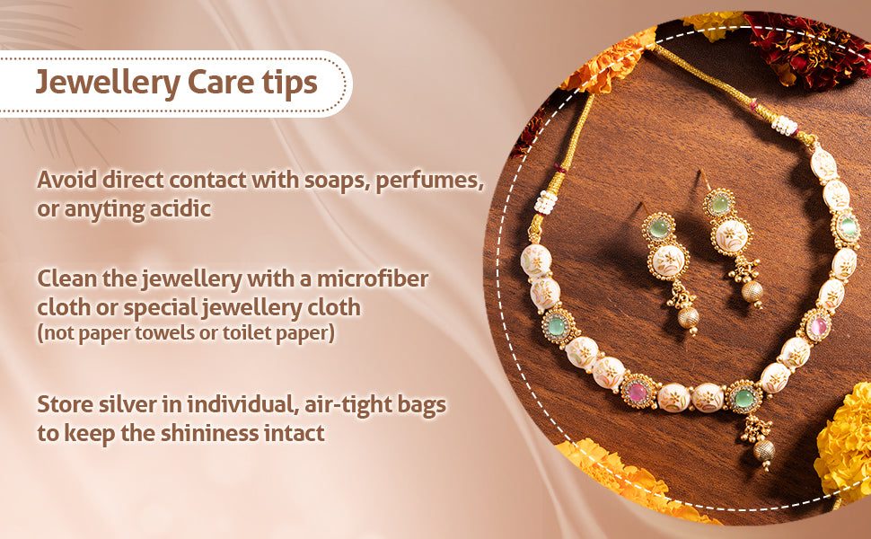 * Care Instruction : Avoid water contact, including swimming or bathing. Keep away from chemicals like perfumes and lotions. Store in a cool, dry place away from sunlight. Clean gently with a soft, lint-free cloth. Handle delicately to avoid bending or pulling. This will keep your jewellery shining for years.