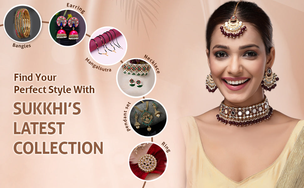 Sukkhi Stylish Gold Plated with AD Beads Choker Necklace Set Earring and Maangtikka Jewellery Set for Women|NS107527