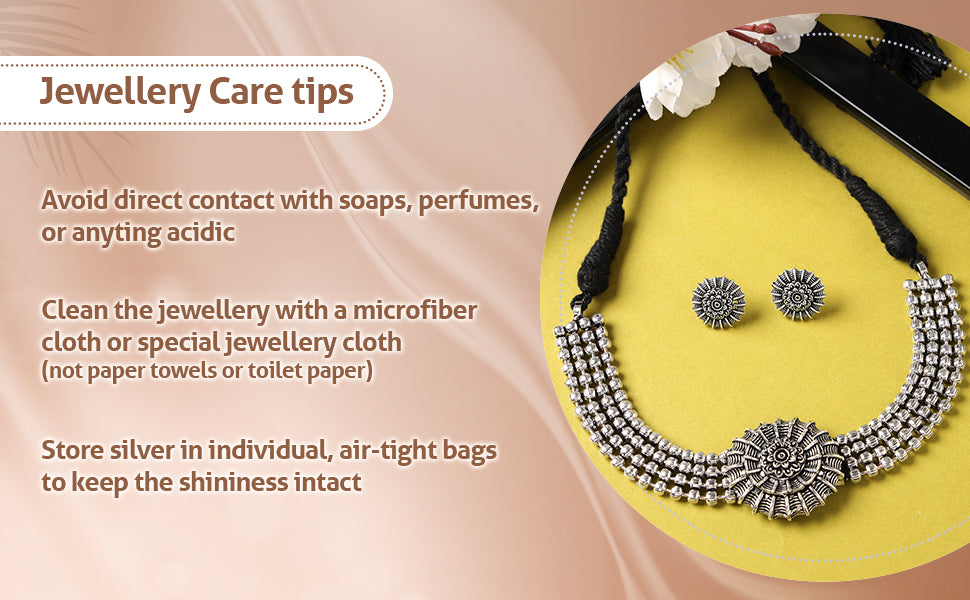 Sukkhi Stylish Oxidised Silver Choker Necklace Set With Studs Earring | Jewellery Set For Women (NS105511)