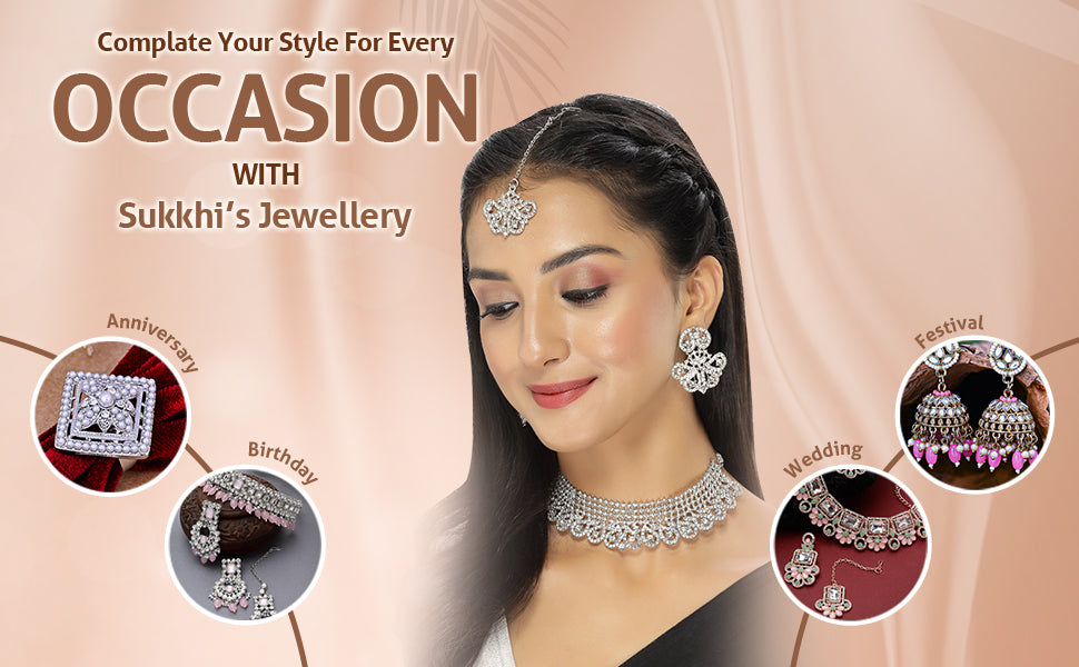 * Complete Jewelry Ensemble: With a coordinated choker necklace, earrings, and Maangtika, this Sukkhi jewellery set provides a well-matched and complete ensemble, suitable for weddings, parties, and special occasions.