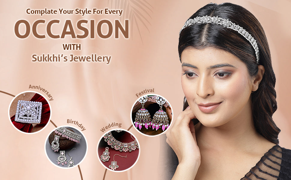 * Floral Design: Sukkhi Trendy Hair Band features an elegant floral design, adding a touch of charm to your traditional and festive look.Silver Rhodium Plating: Crafted with a silver rhodium finish, it offers a brilliant shine and long-lasting appeal.