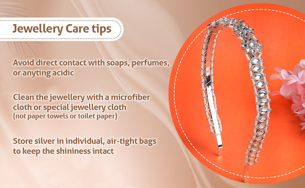 * Care Instruction : Avoid water contact, including swimming or bathing. Keep away from chemicals like perfumes and lotions. Store in a cool, dry place away from sunlight. Clean gently with a soft, lint-free cloth. Handle delicately to avoid bending or pulling. This will keep your jewellery shining for years.