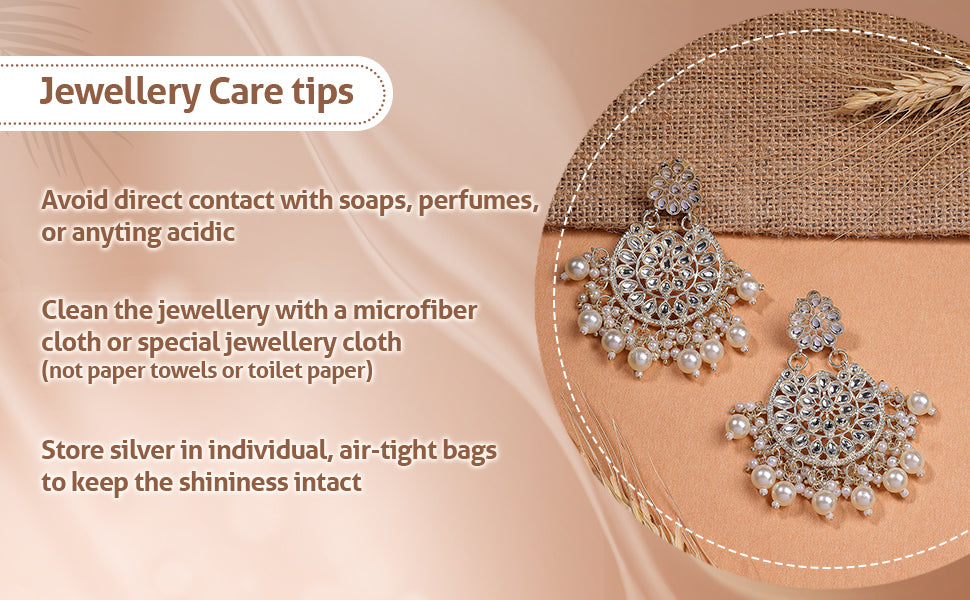 * Care Instruction : Avoid water contact, including swimming or bathing. Keep away from chemicals like perfumes and lotions. Store in a cool, dry place away from sunlight. Clean gently with a soft, lint-free cloth. Handle delicately to avoid bending or pulling. This will keep your jewellery shining for years.