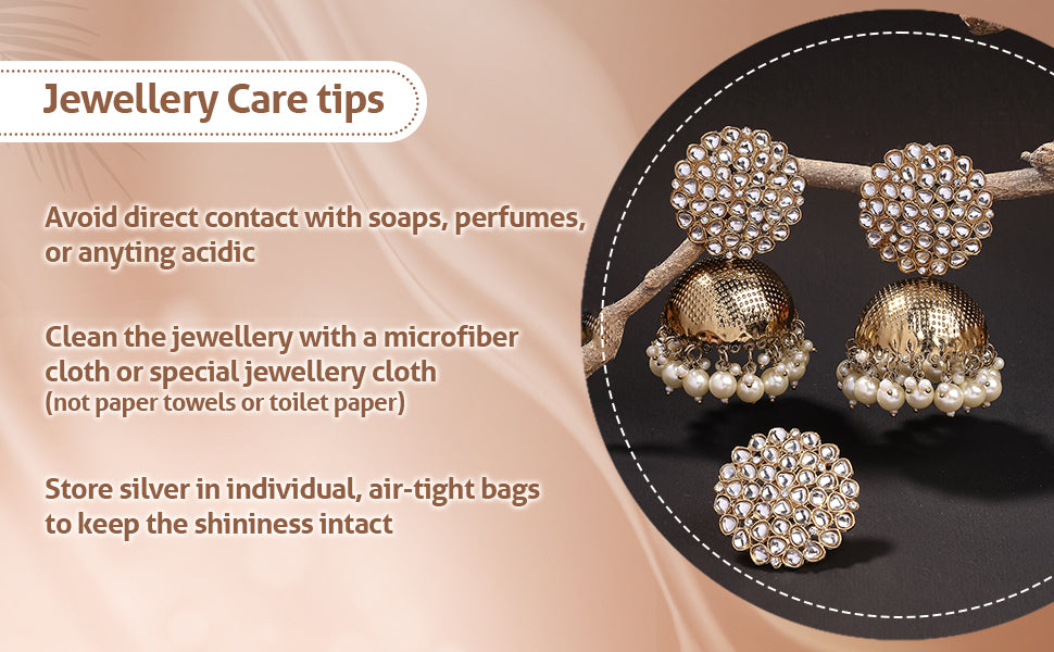 * Care Instruction : Avoid water contact, including swimming or bathing. Keep away from chemicals like perfumes and lotions. Store in a cool, dry place away from sunlight. Clean gently with a soft, lint-free cloth. Handle delicately to avoid bending or pulling. This will keep your jewellery shining for years.