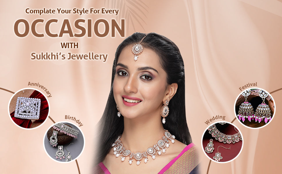 * Premium Quality Craftsmanship: Crafted with meticulous attention to detail, this Sukkhi jewellery set is made from high-quality materials, ensuring durability and long-lasting shine. The intricate craftsmanship reflects the brand's commitment to delivering exquisite and authentic jewellery pieces.