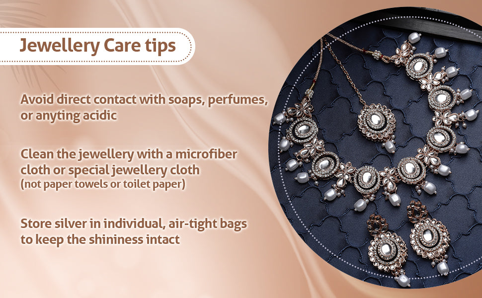 * Care Instruction : Avoid water contact, including swimming or bathing. Keep away from chemicals like perfumes and lotions. Store in a cool, dry place away from sunlight. Clean gently with a soft, lint-free cloth. Handle delicately to avoid bending or pulling. This will keep your jewellery shining for years.