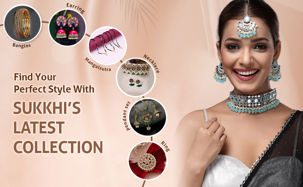 Sukkhi Traditional Rhodium Plated with AD Beads Choker Necklace Set Earring and Maangtikka Jewellery Set for Women|NS107522