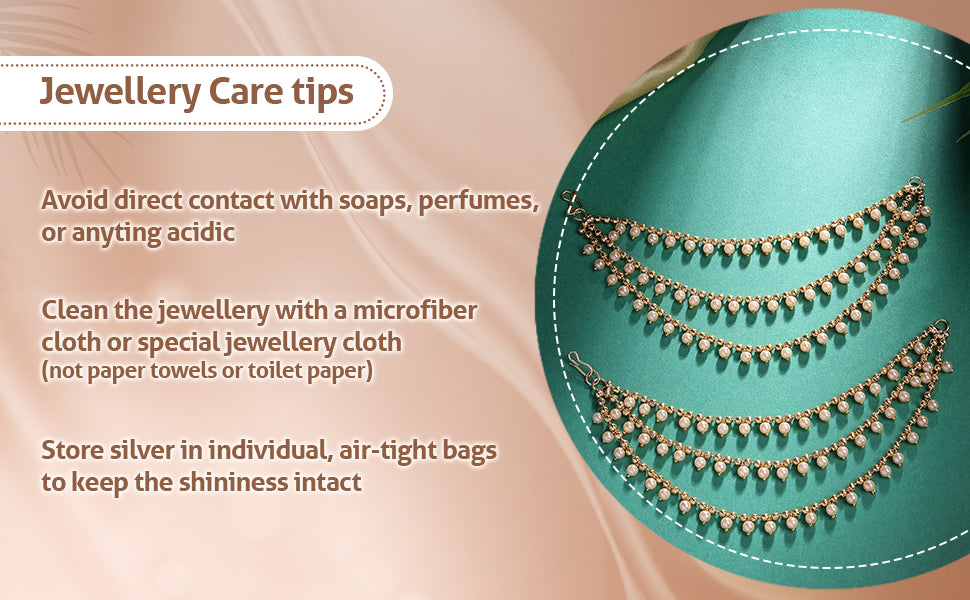 * Care Instruction : Avoid water contact, including swimming or bathing. Keep away from chemicals like perfumes and lotions. Store in a cool, dry place away from sunlight. Clean gently with a soft, lint-free cloth. Handle delicately to avoid bending or pulling. This will keep your jewellery shining for years.