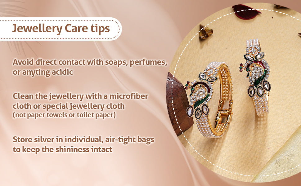 * Care Instruction : Avoid water contact, including swimming or bathing. Keep away from chemicals like perfumes and lotions. Store in a cool, dry place away from sunlight. Clean gently with a soft, lint-free cloth. Handle delicately to avoid bending or pulling. This will keep your jewellery shining for years.