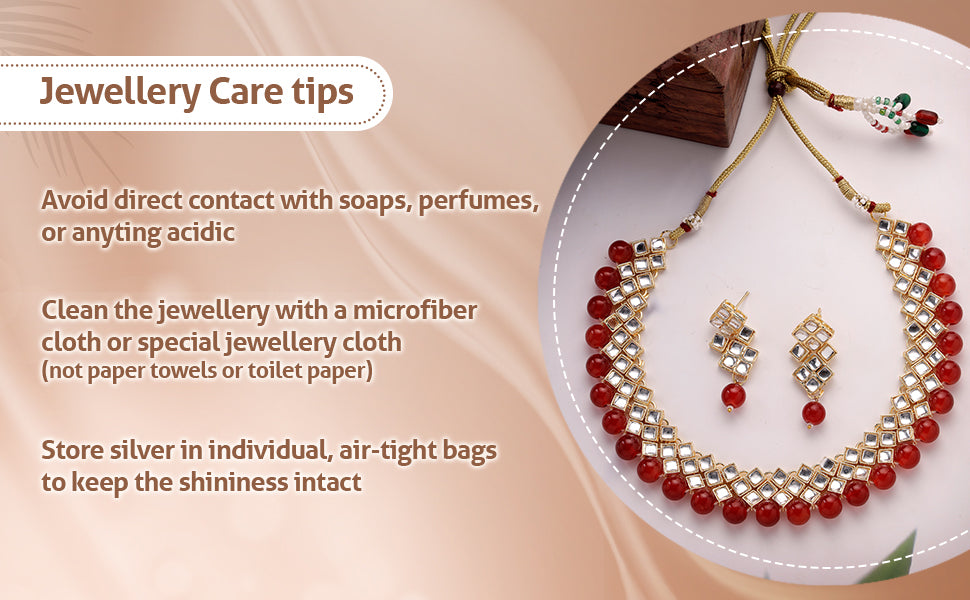 * Care Instruction : Avoid water contact, including swimming or bathing. Keep away from chemicals like perfumes and lotions. Store in a cool, dry place away from sunlight. Clean gently with a soft, lint-free cloth. Handle delicately to avoid bending or pulling. This will keep your jewellery shining for years.