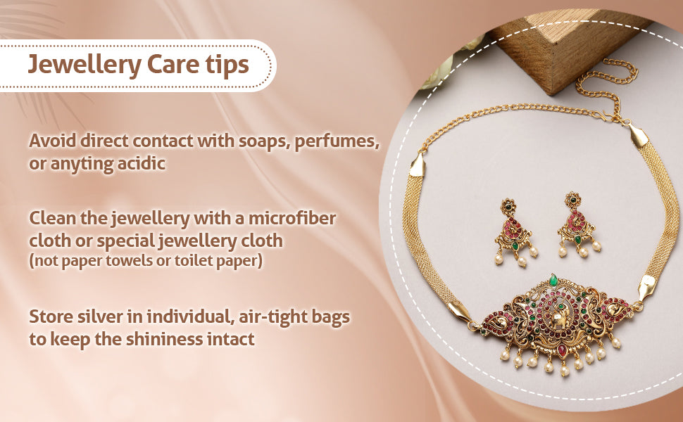 * Care Instruction : Avoid water contact, including swimming or bathing. Keep away from chemicals like perfumes and lotions. Store in a cool, dry place away from sunlight. Clean gently with a soft, lint-free cloth. Handle delicately to avoid bending or pulling. This will keep your jewellery shining for years.