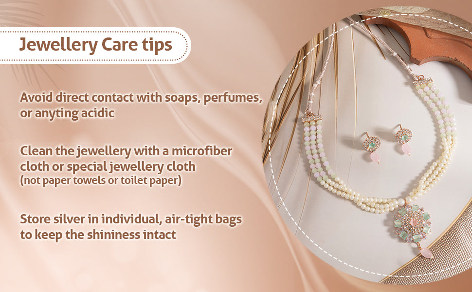 * Care Instruction : Avoid water contact, including swimming or bathing. Keep away from chemicals like perfumes and lotions. Store in a cool, dry place away from sunlight. Clean gently with a soft, lint-free cloth. Handle delicately to avoid bending or pulling. This will keep your jewellery shining for years.