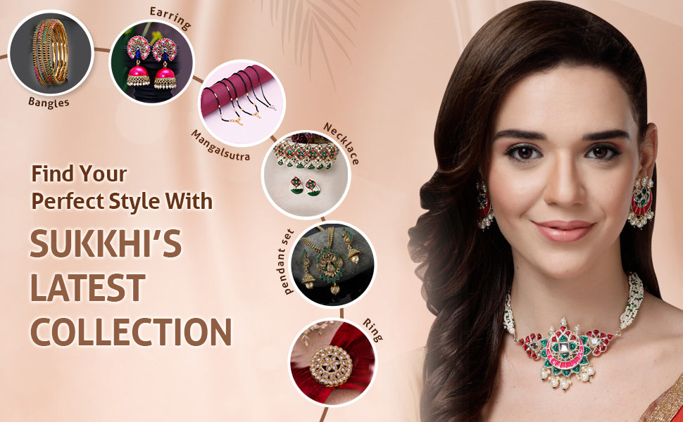 Sukkhi Unique Fashionable Pink & Green Meenakari Gold Plated Multistrand Pearls Choker Necklace with Drop Earring Jewellery Set for Women & Girls|NS107347 Enhance your ethnic collection with the Sukkhi Unique Fashionable Pink & Green Meenakari Gold Plated Multistrand Pearls Choker Necklace set. This exquisite set features a vibrant blend of pink and green meenakari work paired with multiple strands of pearls, creating a stunning contrast. The matching drop earrings complement the choker perfectly, adding balance and grace to your ensemble. Ideal for festive occasions, weddings, and cultural celebrations, this jewellery set offers a stylish way to showcase traditional artistry. Designed for women and girls who love eye-catching accessories, it adds a colorful and elegant touch to any ethnic outfit.