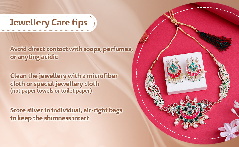 * Care Instruction : Avoid water contact, including swimming or bathing. Keep away from chemicals like perfumes and lotions. Store in a cool, dry place away from sunlight. Clean gently with a soft, lint-free cloth. Handle delicately to avoid bending or pulling. This will keep your jewellery shining for years.