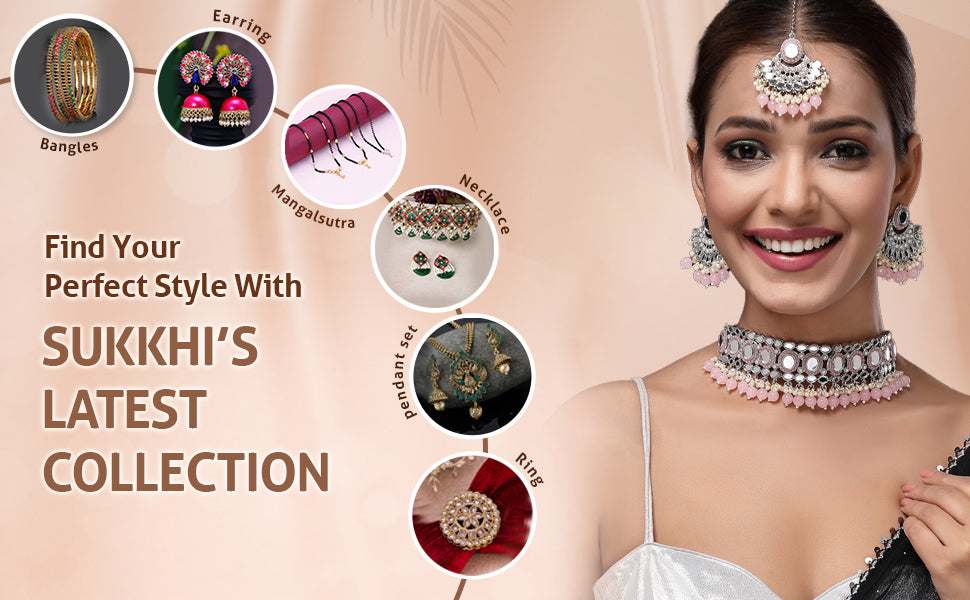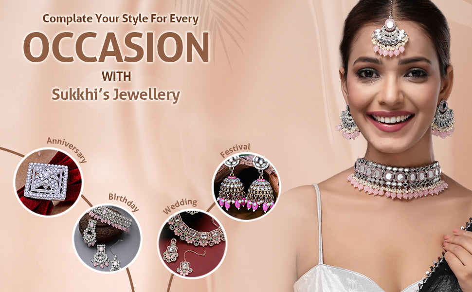 Sukkhi Unique Rhodium Plated with AD Beads Choker Necklace Set Earring and Maangtikka Jewellery Set for Women|NS107524
