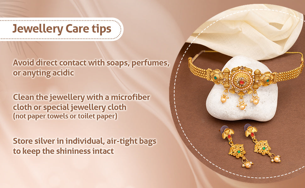* Care Instruction : Avoid water contact, including swimming or bathing. Keep away from chemicals like perfumes and lotions. Store in a cool, dry place away from sunlight. Clean gently with a soft, lint-free cloth. Handle delicately to avoid bending or pulling. This will keep your jewellery shining for years.